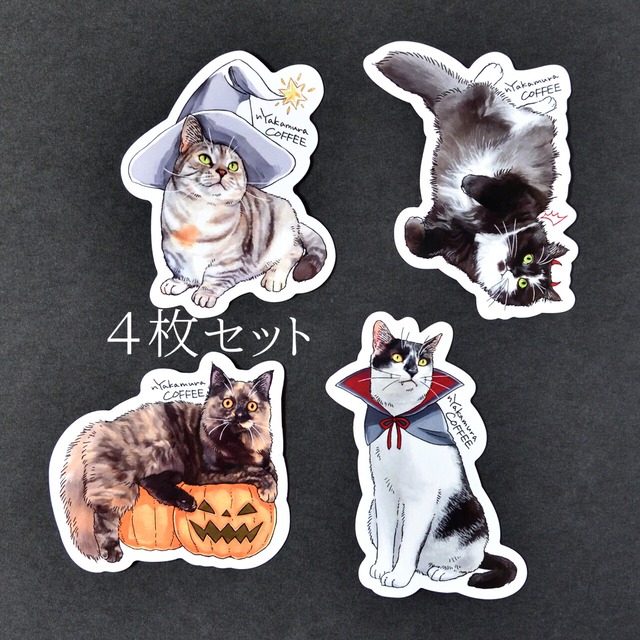 猫ちゃんステッカー(ハロウィンvol.1)4枚セット
