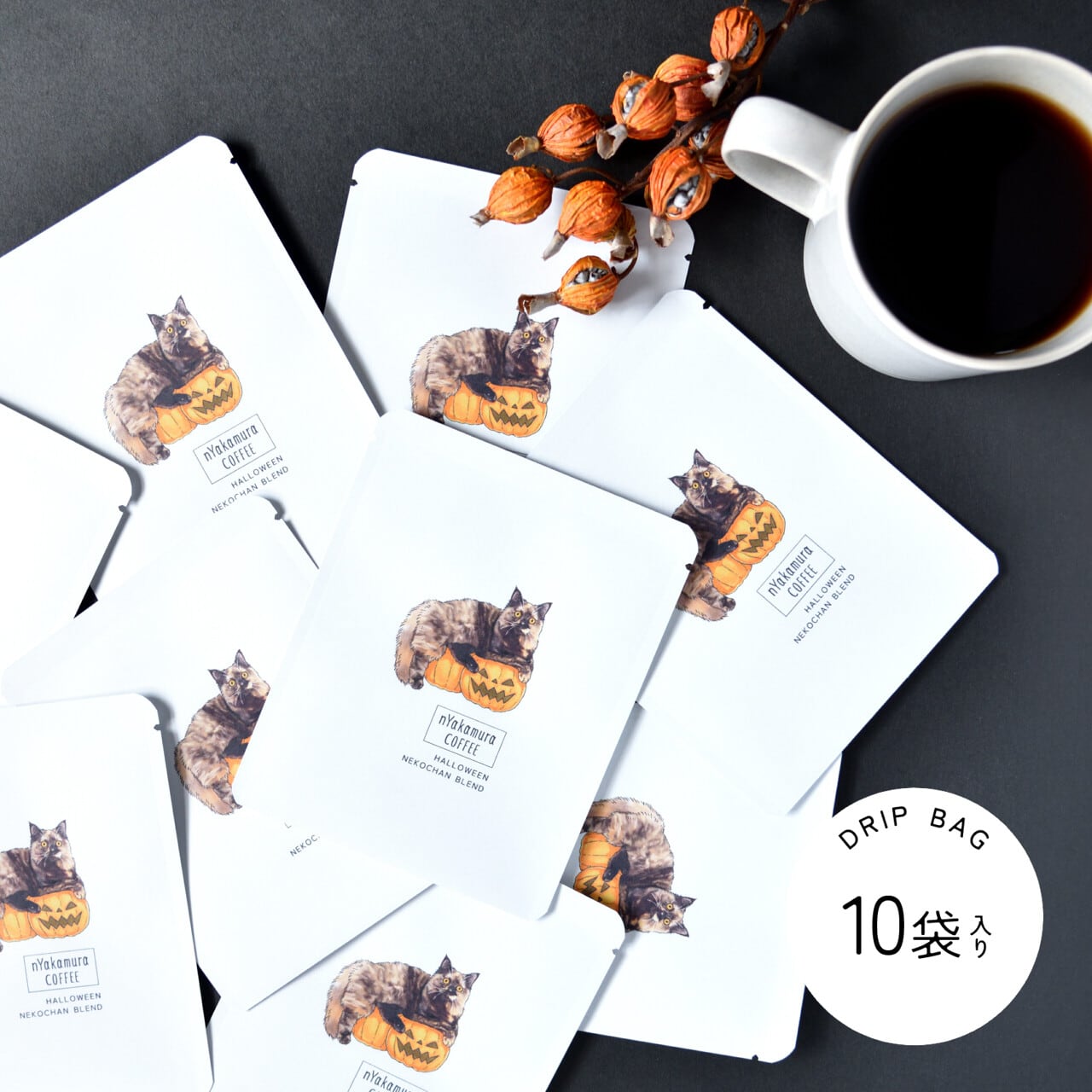 【ハロウィン限定】★送料無料★猫のドリップコーヒー(ドリップバッグ10袋・簡易包装) 【コーヒーの種類が選べます】