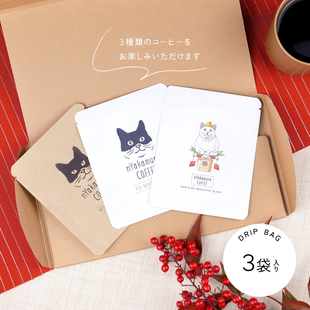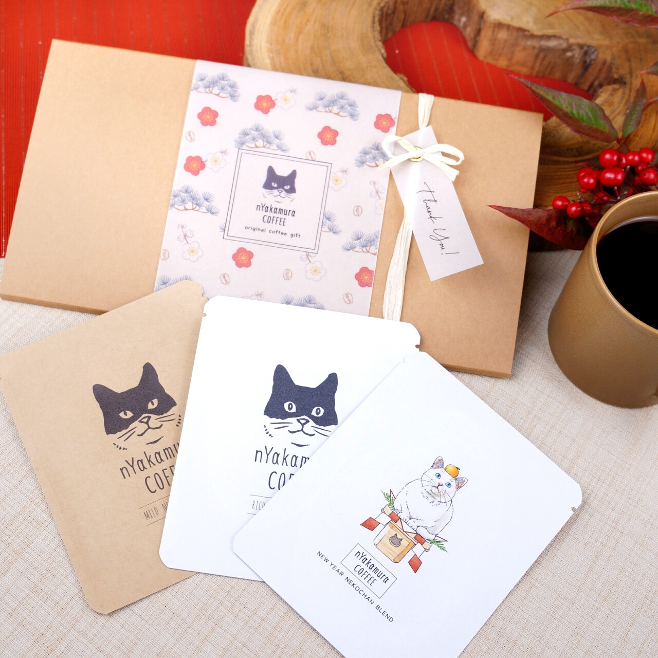 【新年のご挨拶に】猫のコーヒーギフトBOX(ドリップバッグ3袋入り(3種類×各1袋))