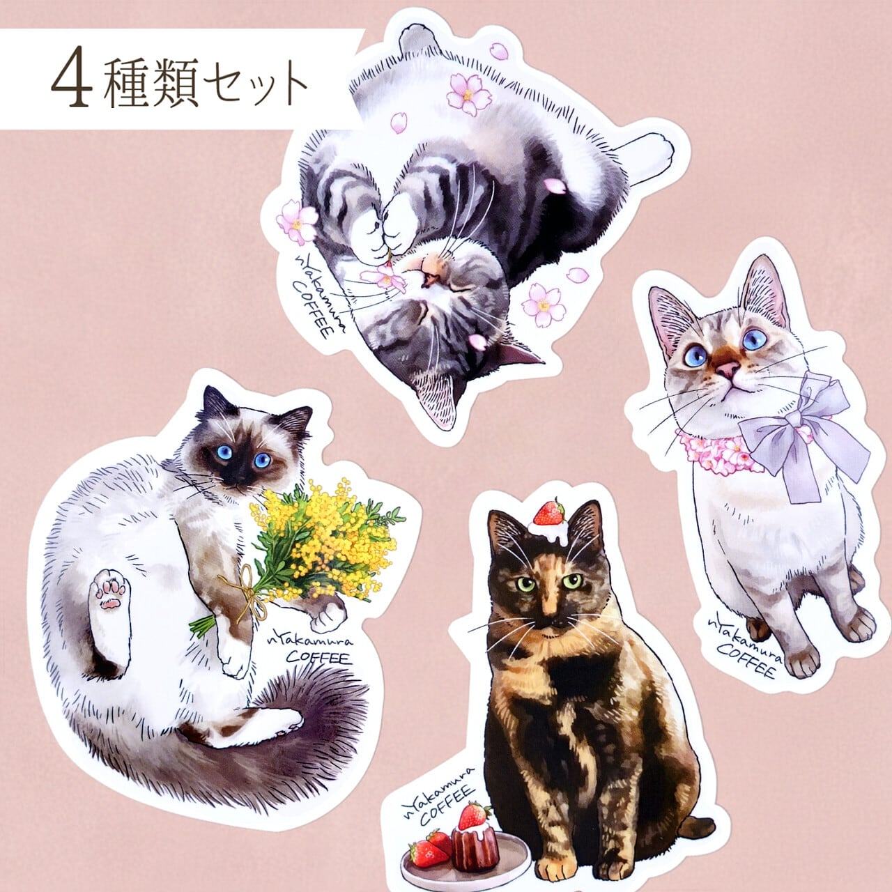 猫ちゃんステッカー(春)4種類セット