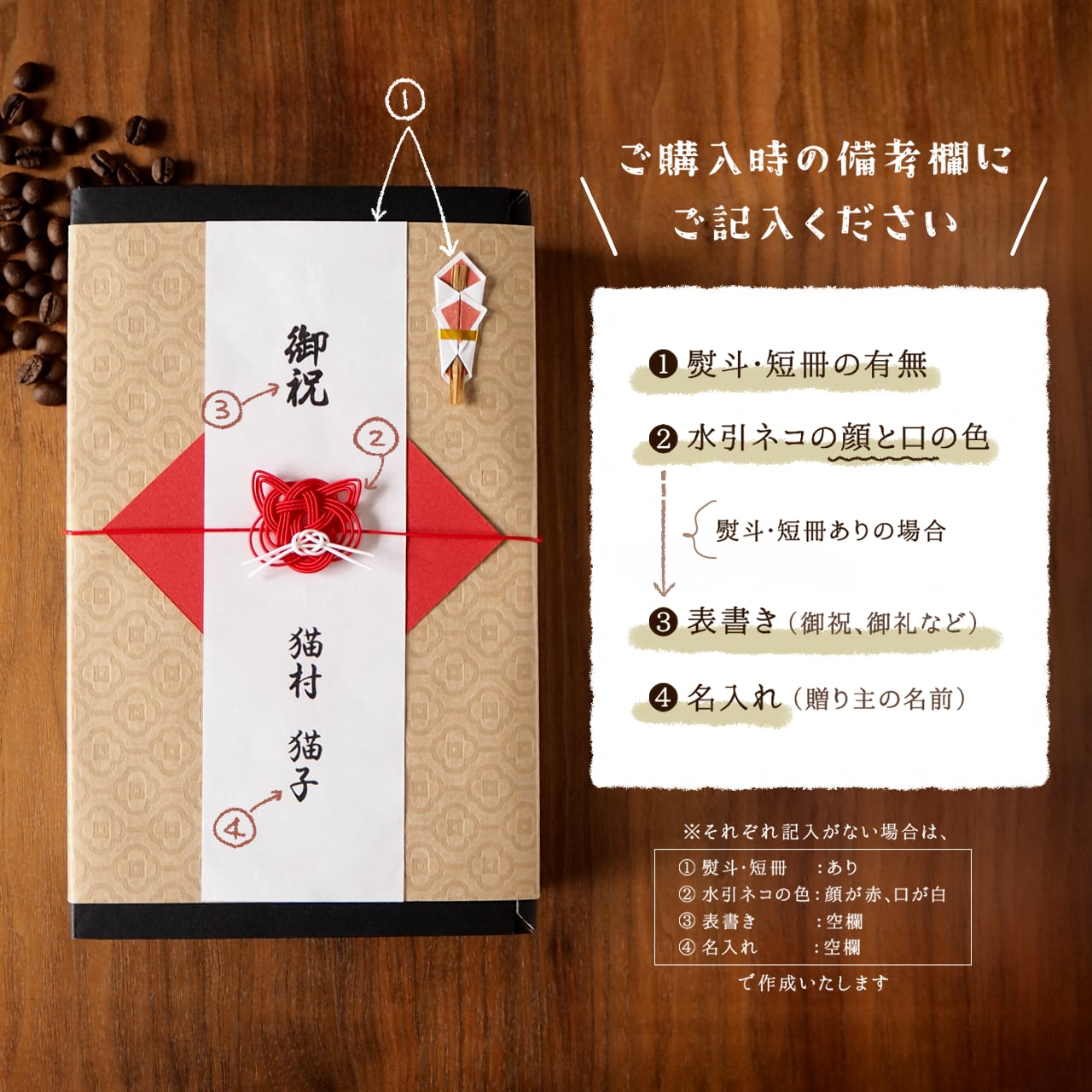 水引ネコの色が選べる!猫のコーヒーギフトBOX(ドリップバッグ10袋入り)【コーヒーの種類が選べます】自家焙煎珈琲/ギフト/プチギフト/ドリップコーヒー
