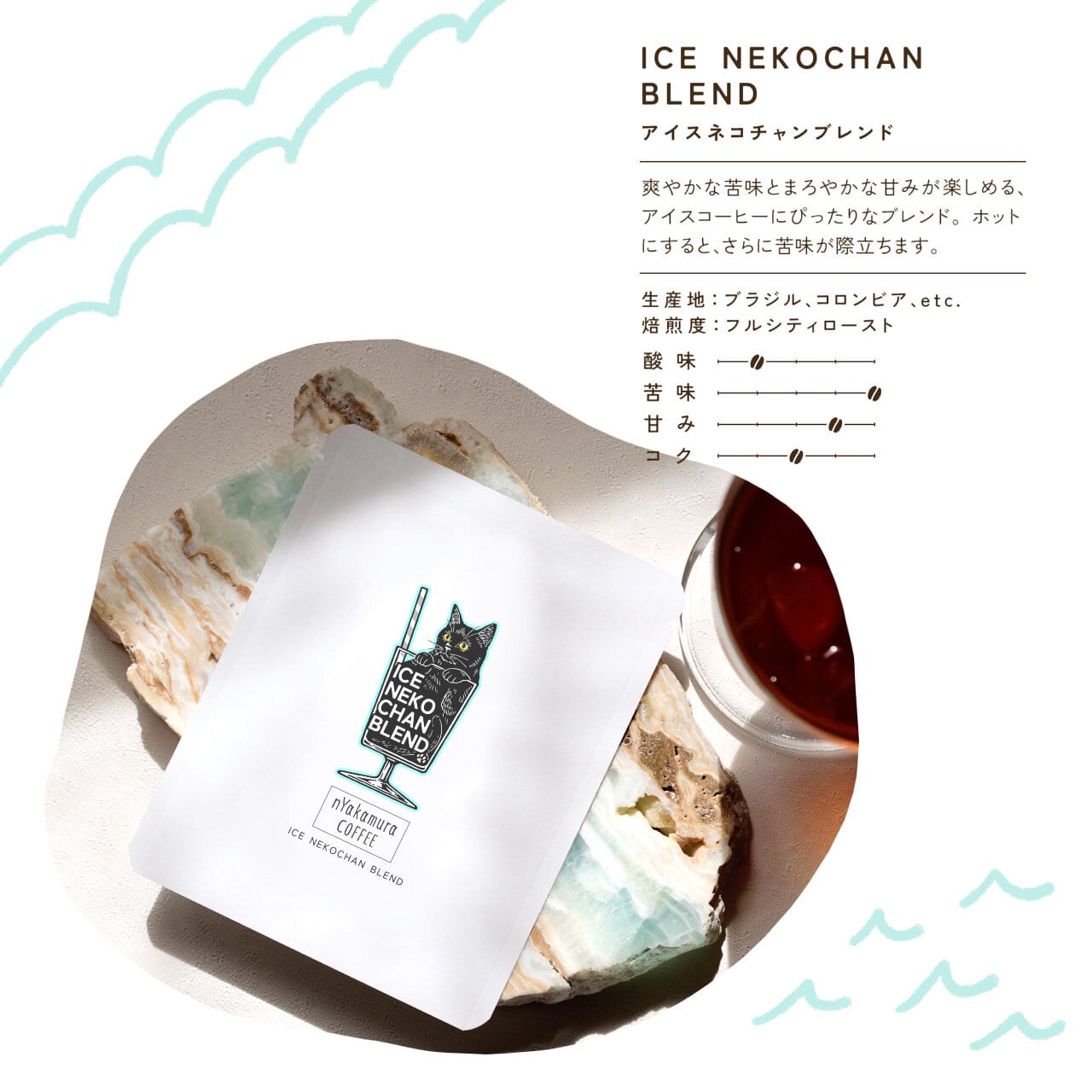 爽やかな苦味とまろやかな甘みが楽しめる、アイスコーヒーにぴったりなブレンド。