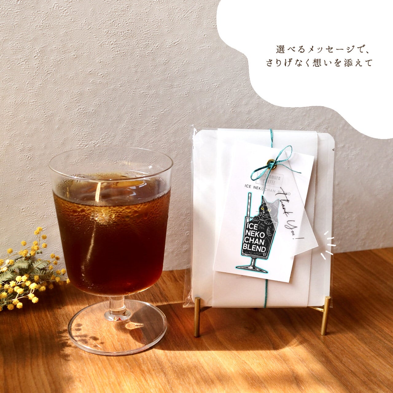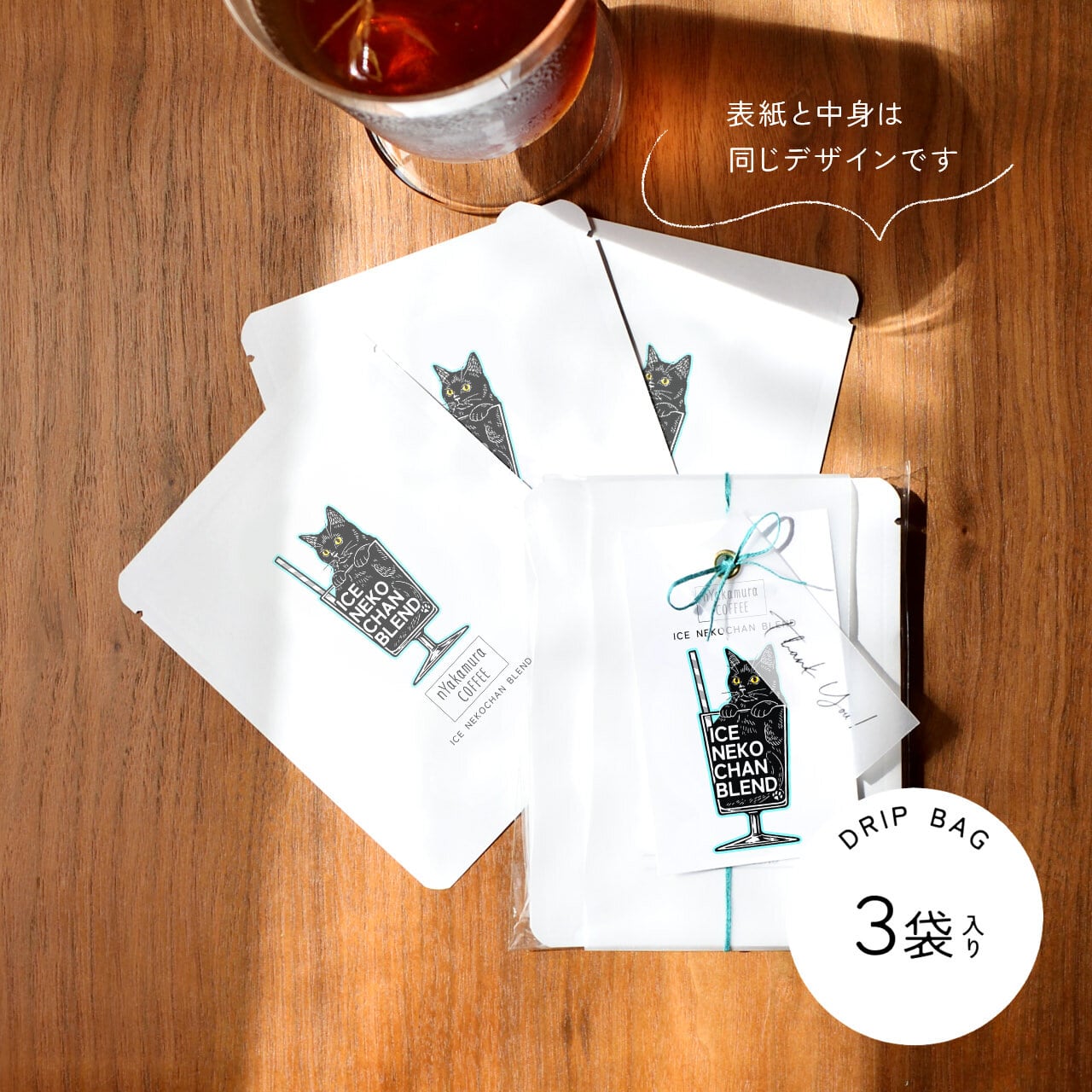 当店オリジナルブレンドコーヒー【アイスネコチャンブレンド】のドリップバッグ3袋がセットになったプチギフト。