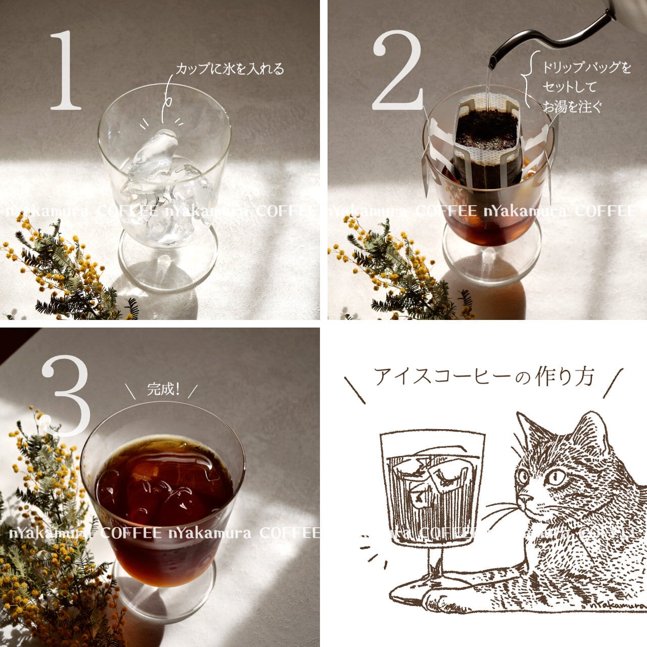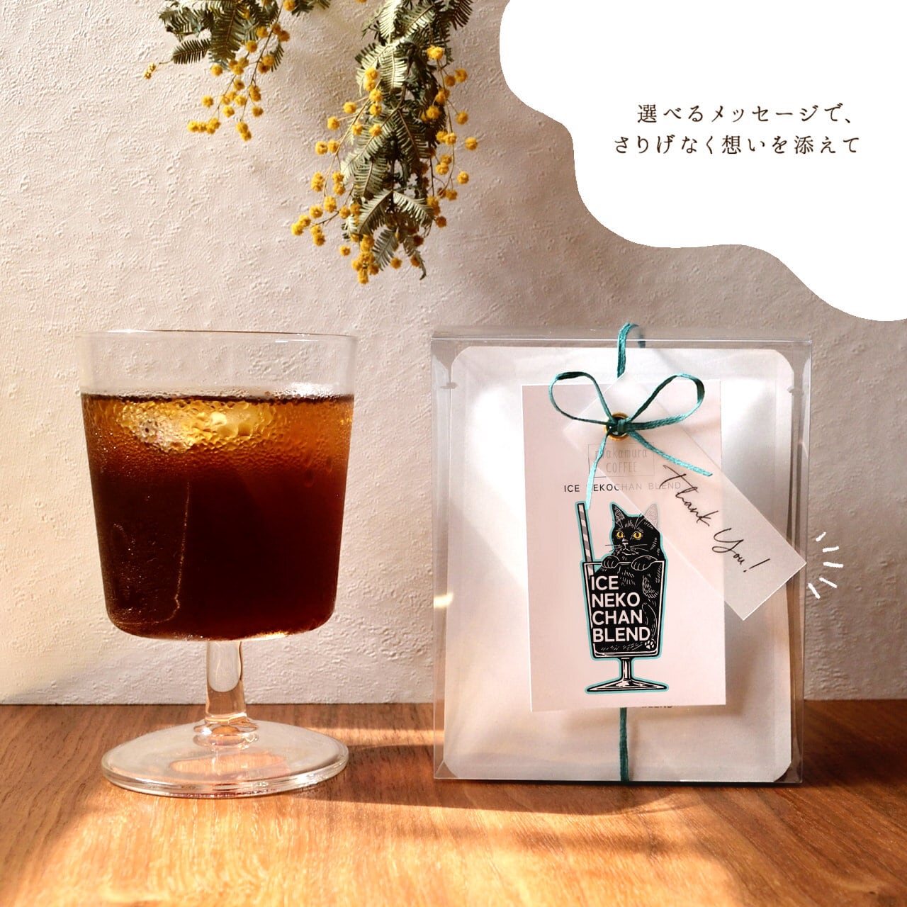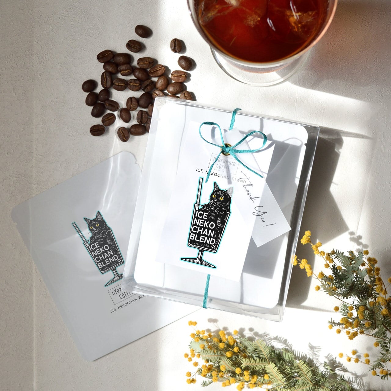 当店オリジナルブレンドコーヒー【アイスネコチャンブレンド】のドリップバッグ5袋がセットになったプチギフト。